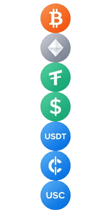 ​We accept major cryptocurrencies like Bitcoin, Ethereum, USDT, USDC, and others through trusted crypto payment gateways.